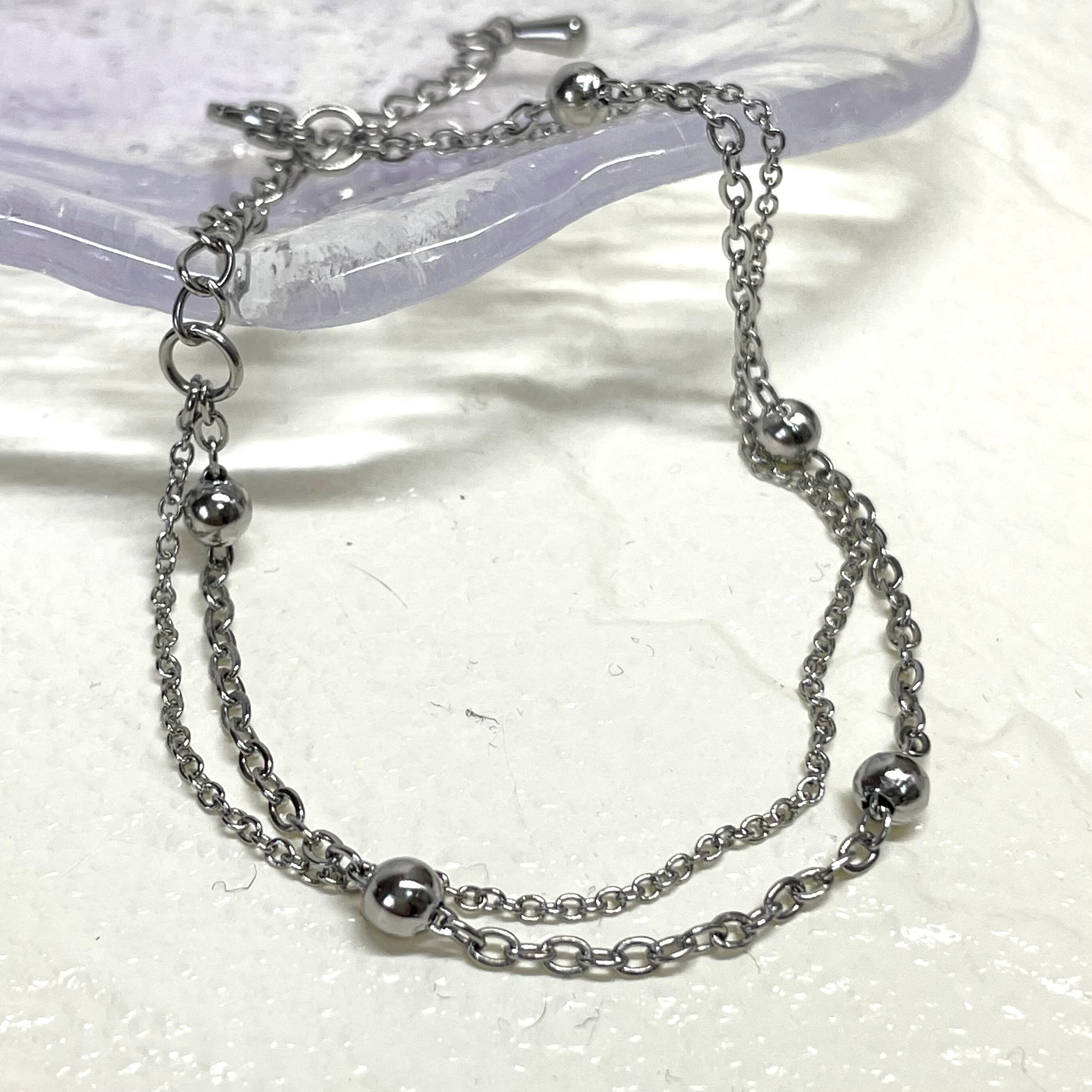 2連チェーンブレスレット サージカルステンレス シルバー色