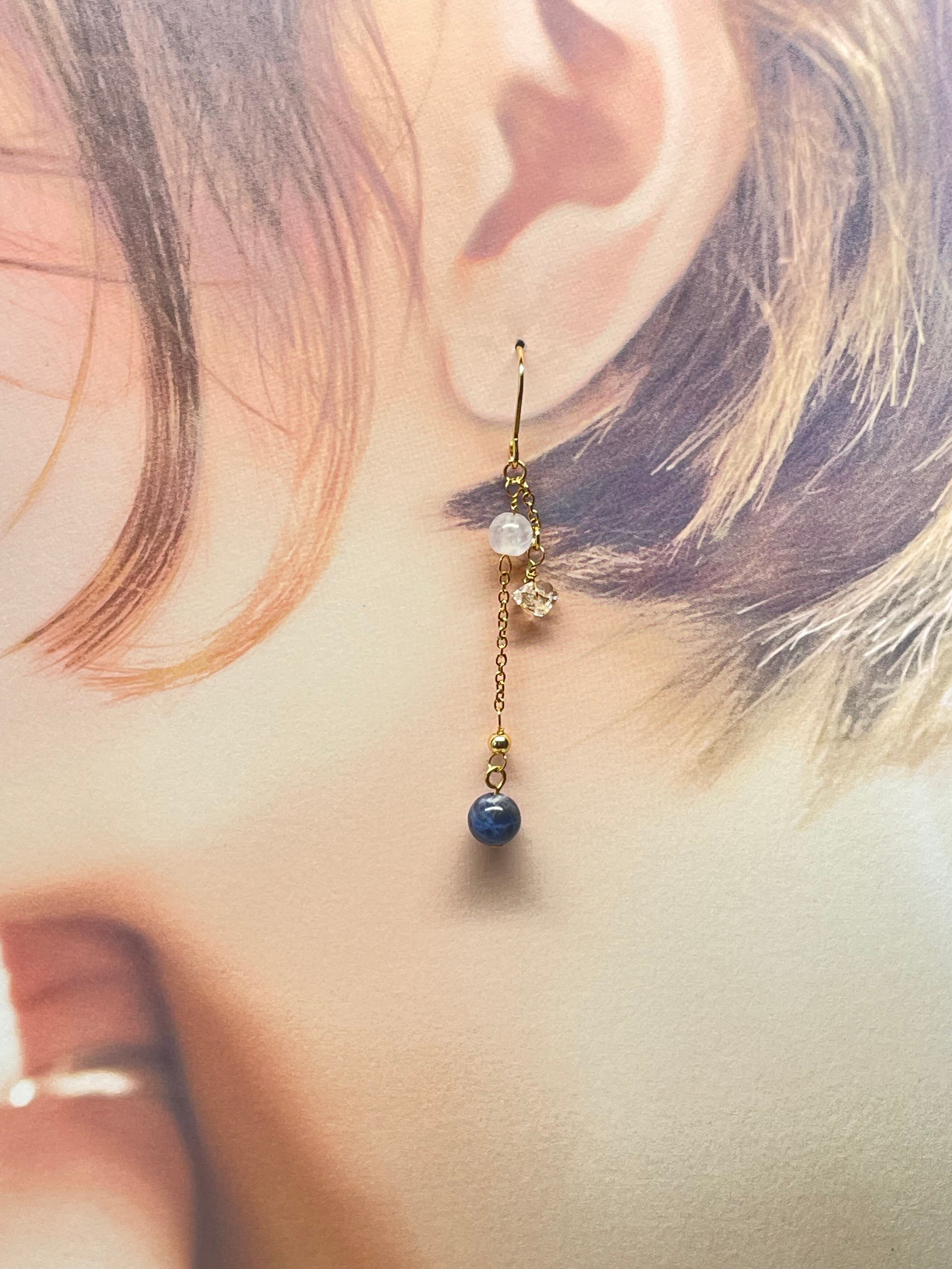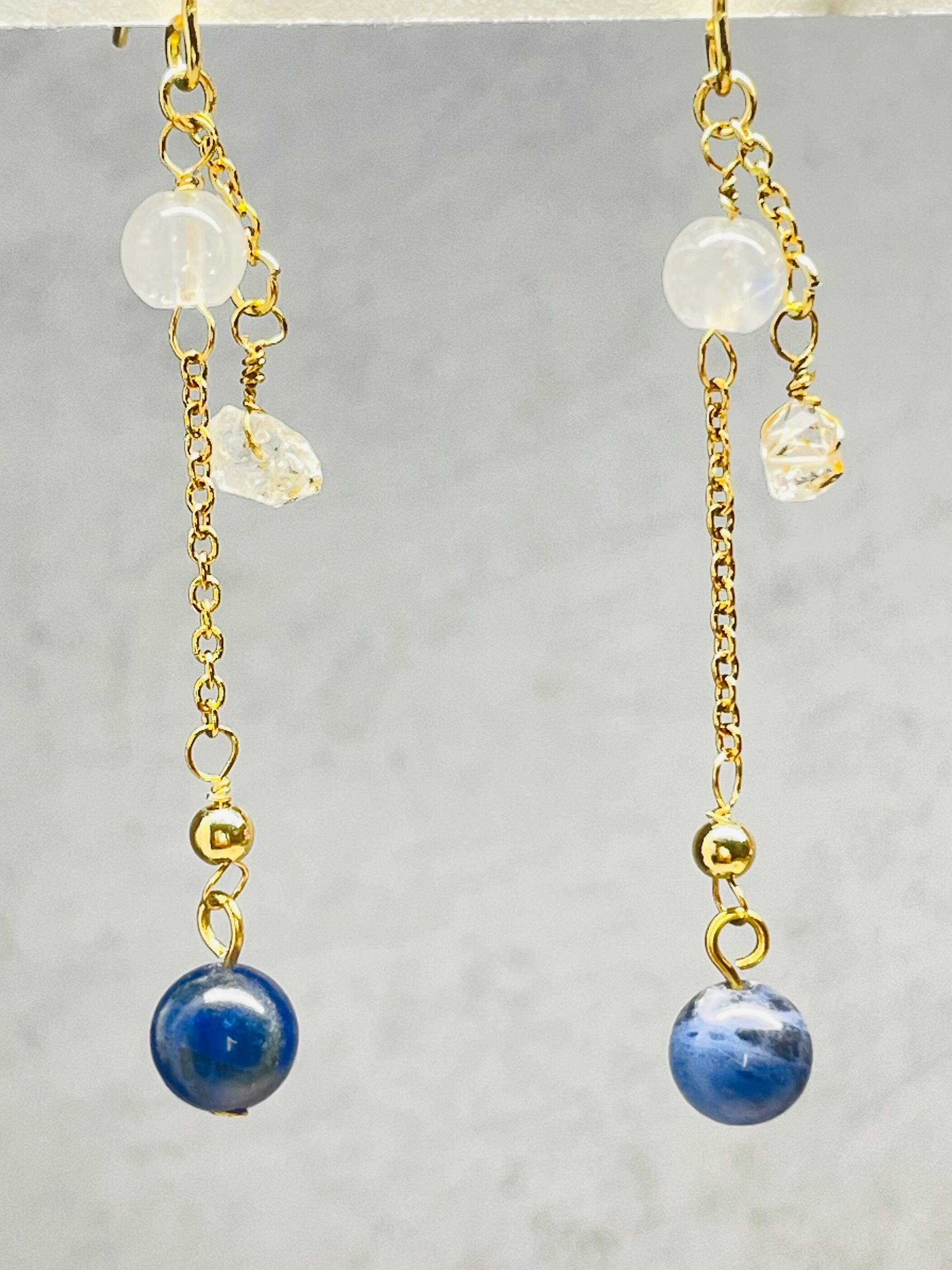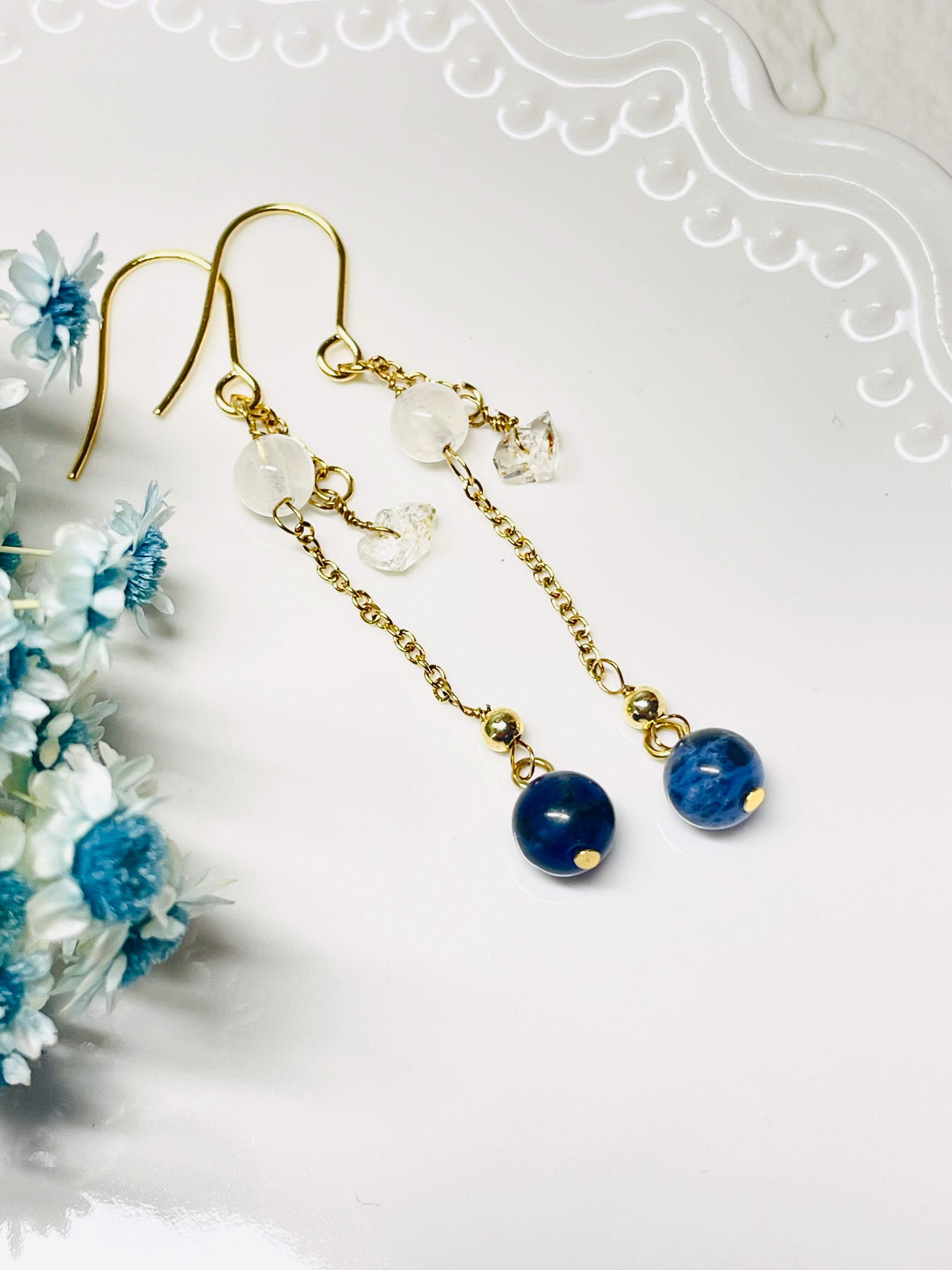 ・ソーダライトとムーンストーンの天然石、さらにハーキマダイヤモンドが、耳元に特別な魅力を添えます