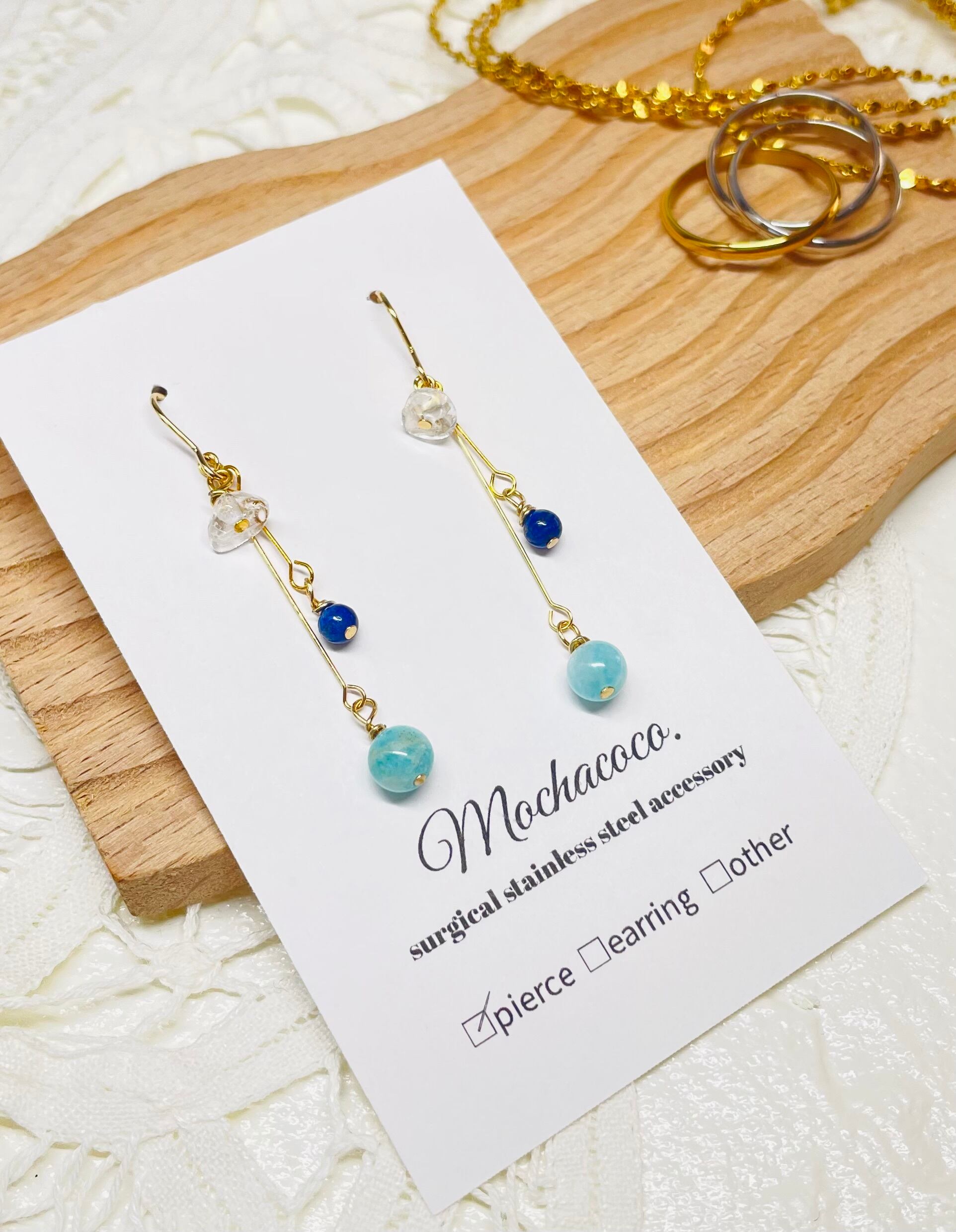 - 天然石ピアス ラピスラズリ アマゾナイト サージカルステンレス -