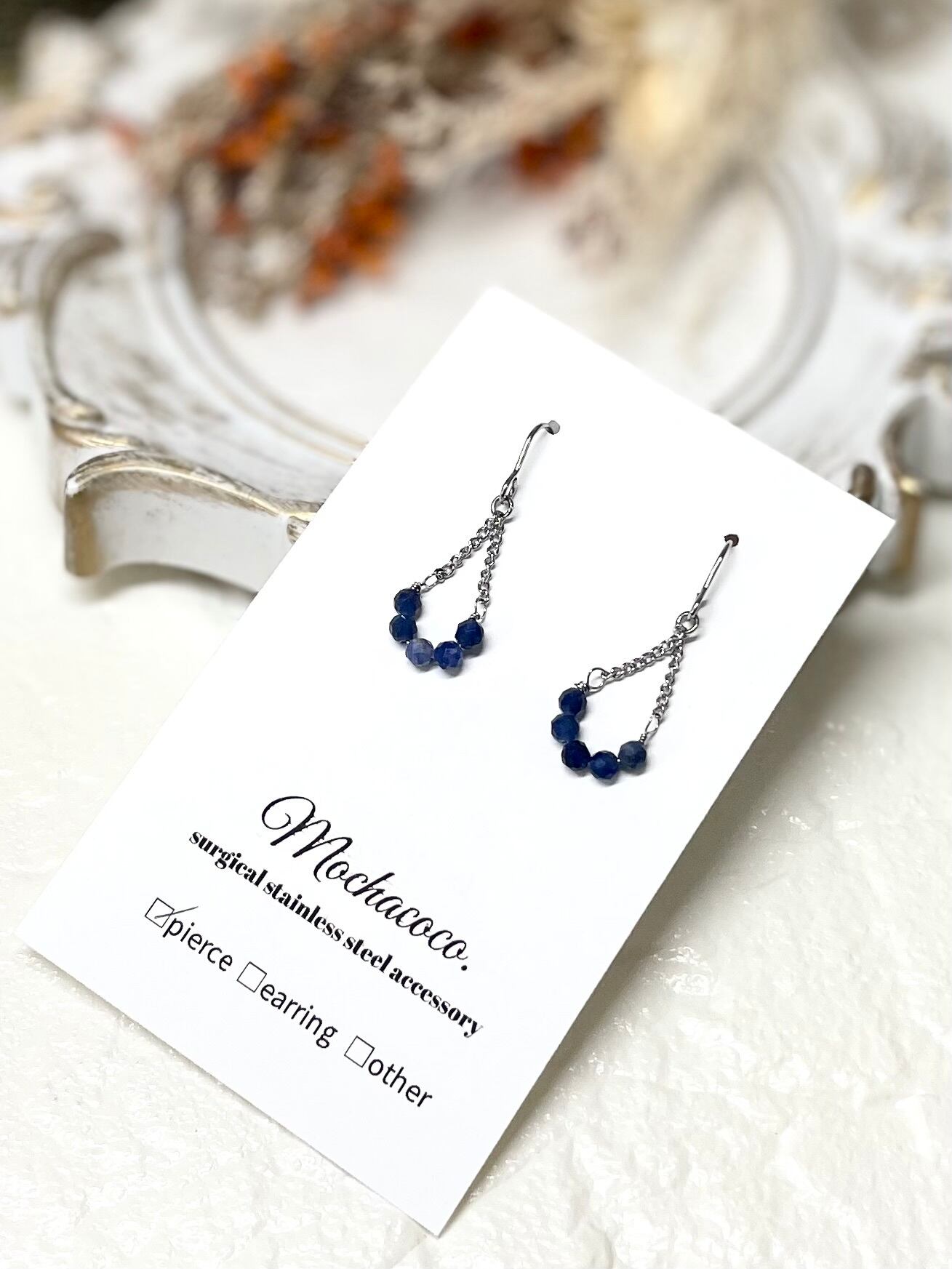 扇形ピアス ソーダライト 天然石ピアス サージカルステンレス