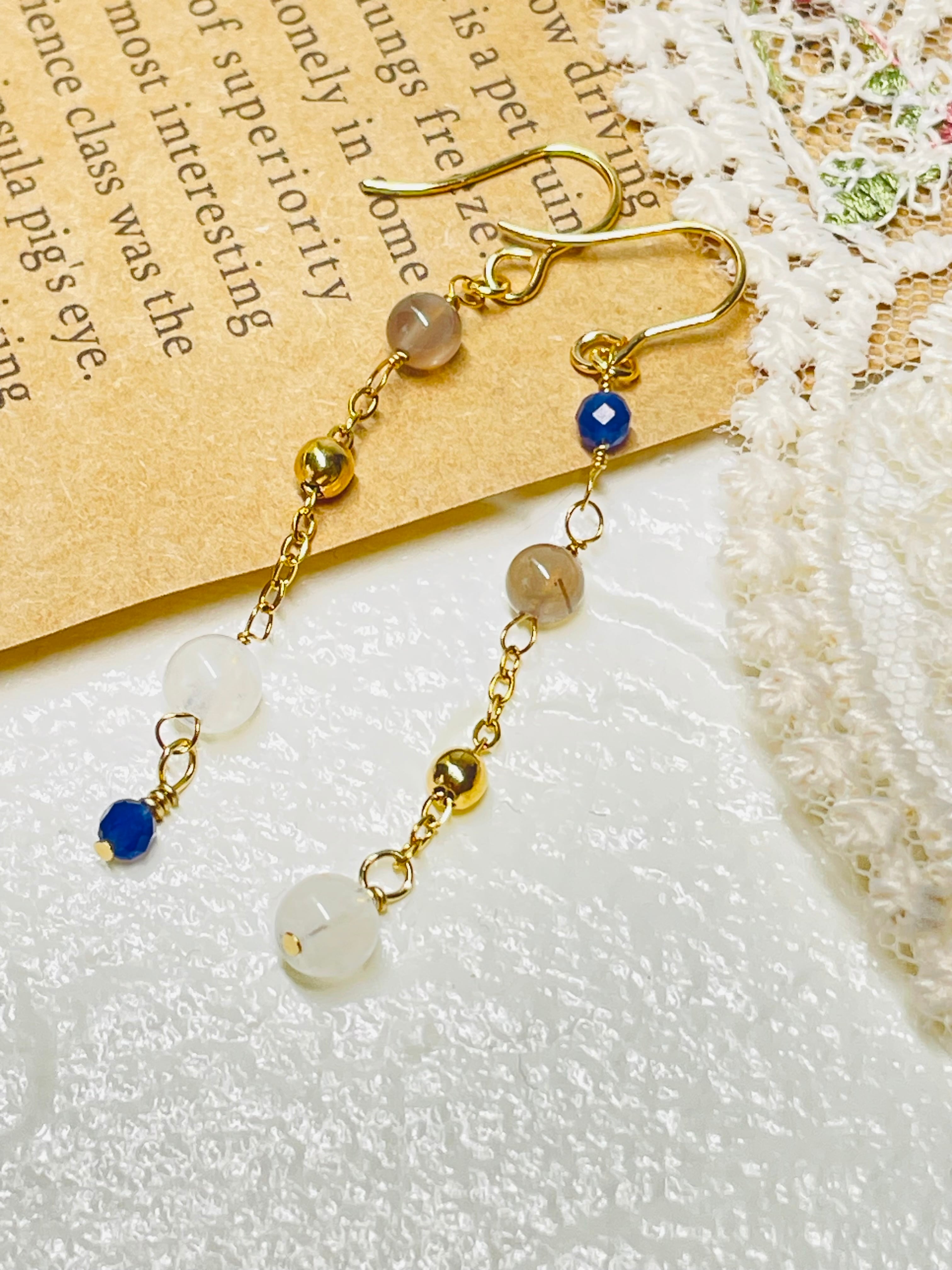・ソーダライトとマルチカラームーンストーンの美しいコントラストが、耳元に特別な魅力を添えます