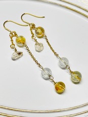 透明感のあるトパーズと、ハーキマダイヤモンドを使用した、優雅にゆれるデザインの天然石ピアス