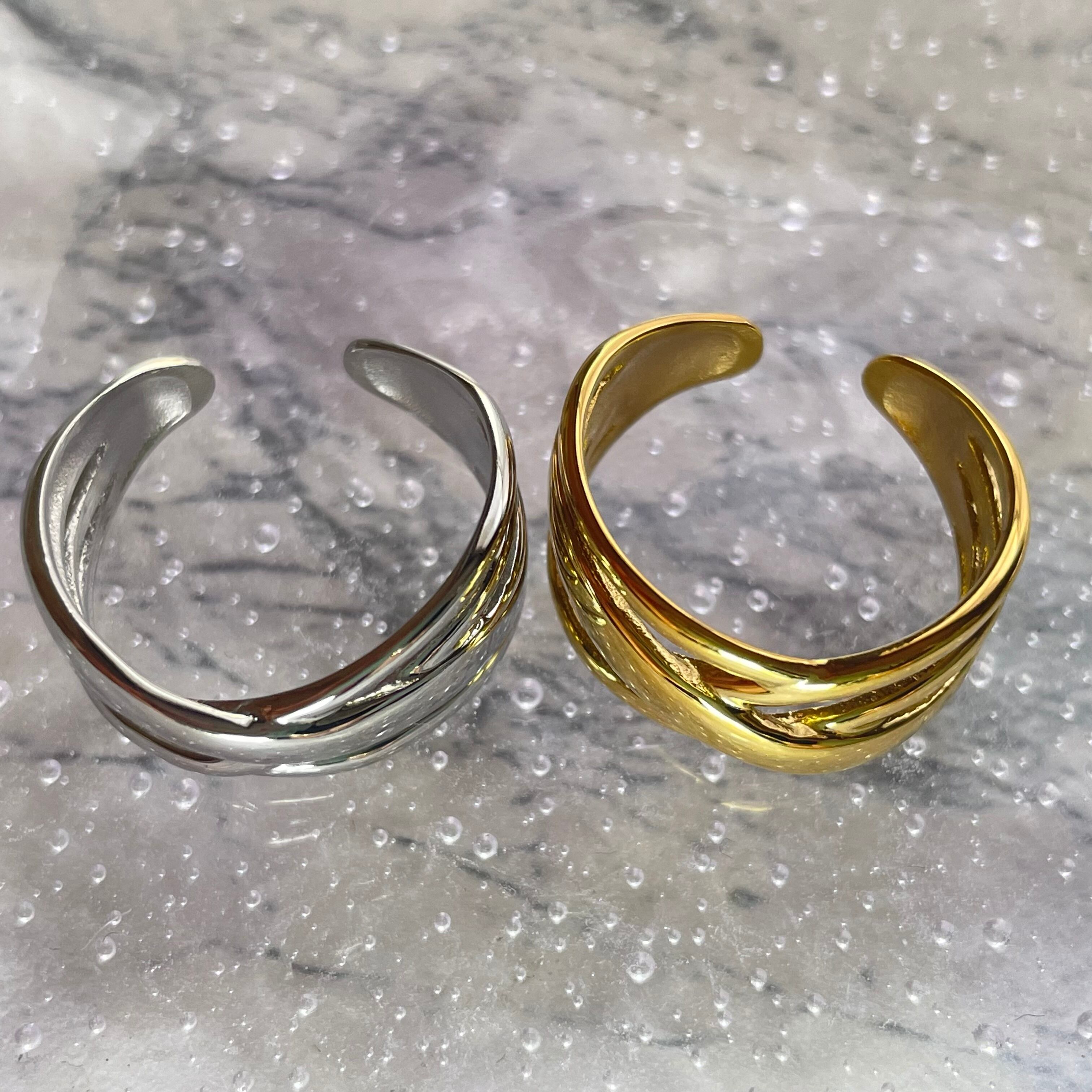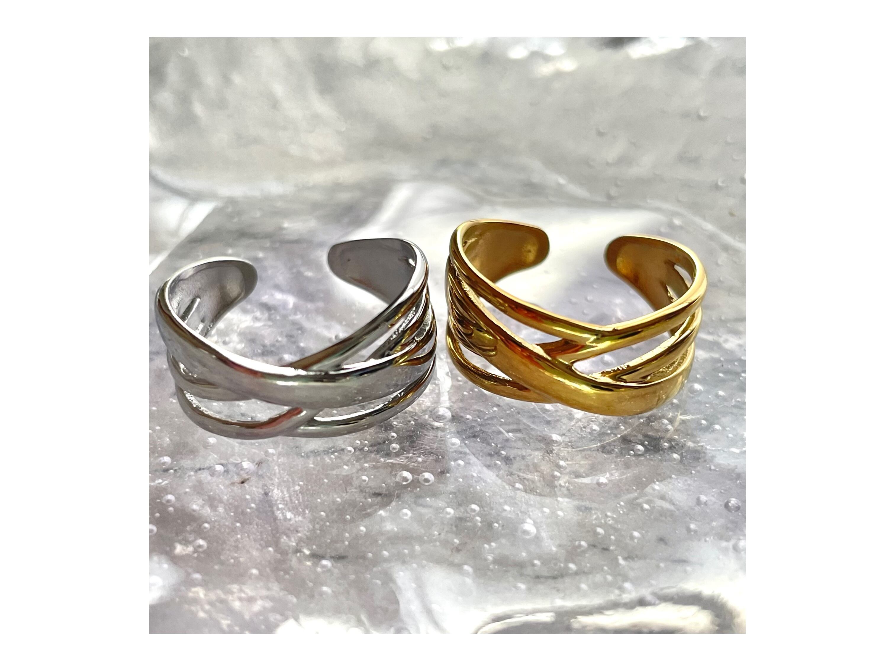 高級感ある太幅デザインが魅力のサージカルステンレスリング。フリーサイズでゴールドとシルバーの2色展開です。手元を華やかに彩り、お洒落なアクセントをプラスします。