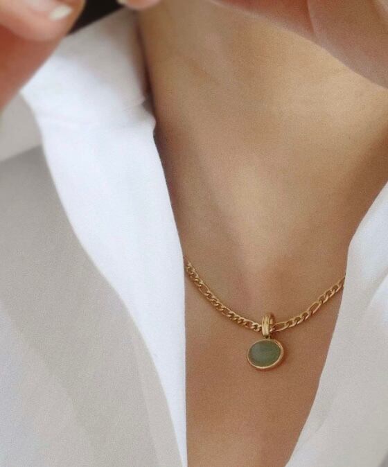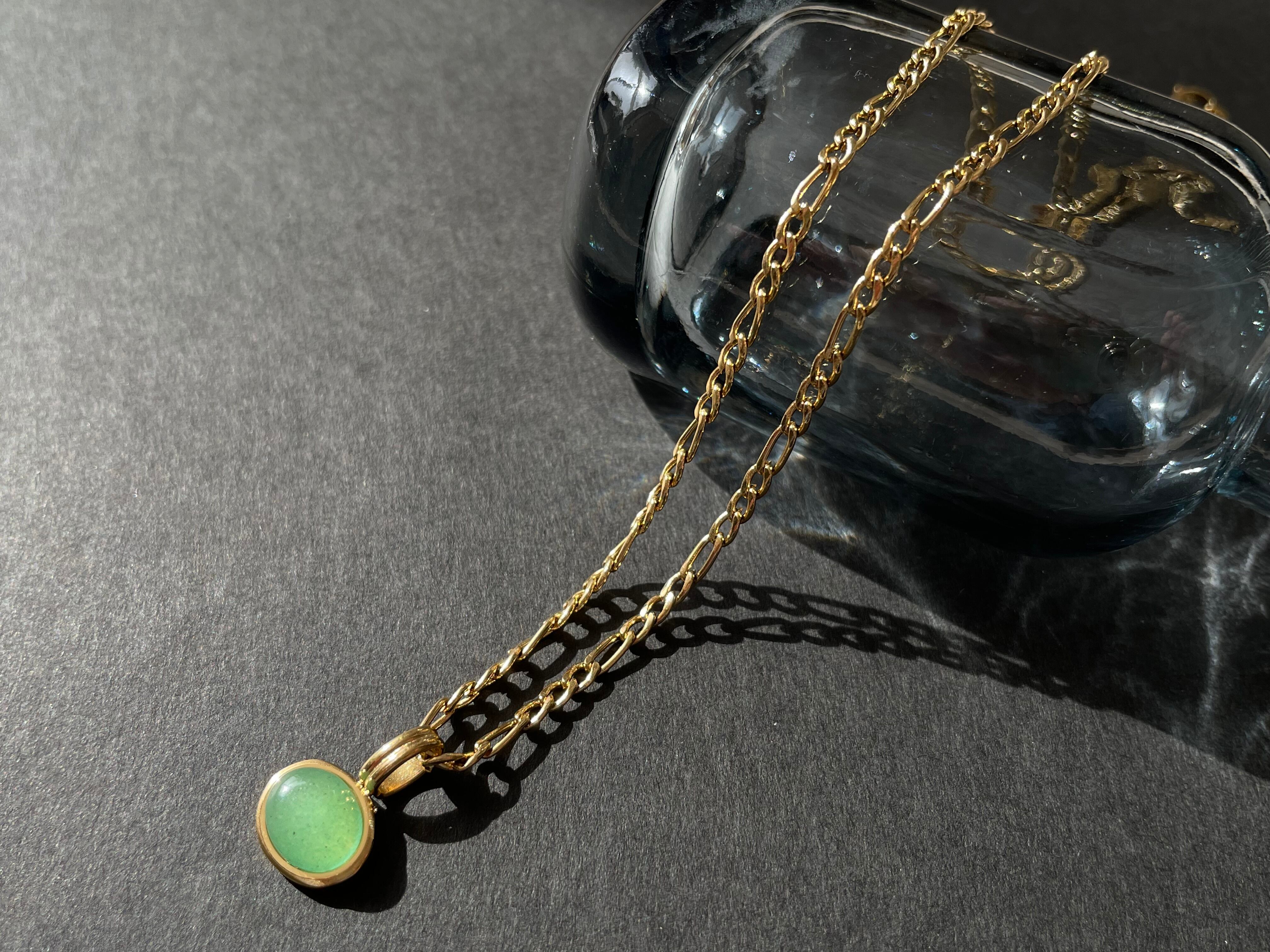天然石の美しさが引き立つサージカルステンレスのネックレスです。鮮やかなグリーンの天然石がアクセントになり、上品さと個性を演出します。サージカルステンレスはアレルギーの心配もなく、いつでも安心して身に着けられます。