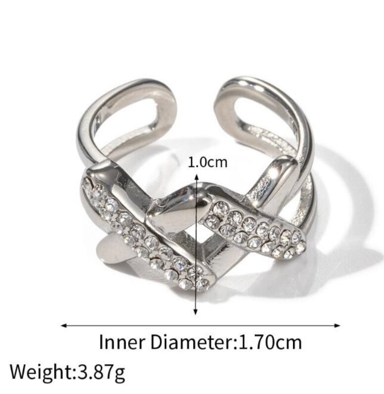 キュービックジルコニア ダブルクロス リング サージカルステンレス 〈16〉