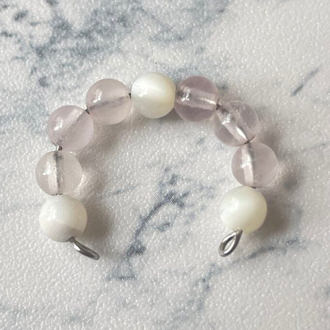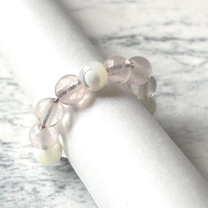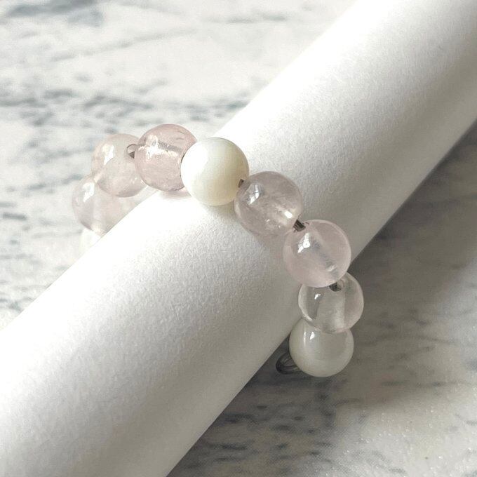 天然石 1連イヤーカフ ローズクォーツ×マザーオブパール サージカルステンレス製 【受注生産】