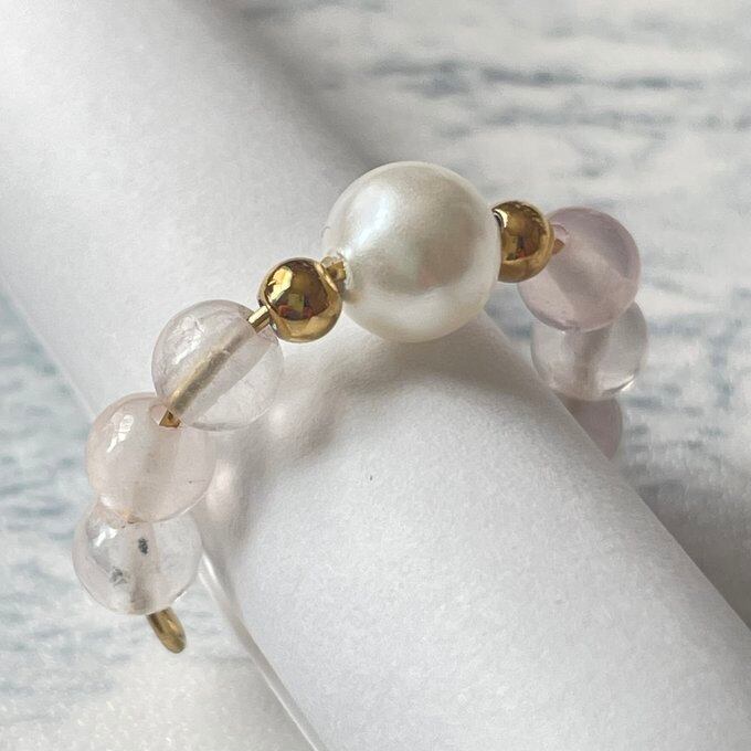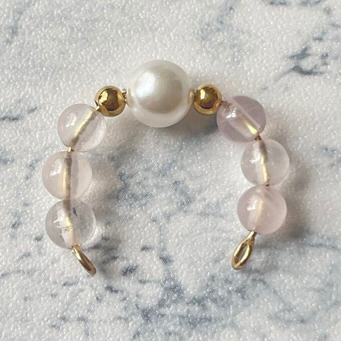 天然石 1連 イヤーカフ パール×ローズクォーツ サージカルステンレス製 【受注生産】