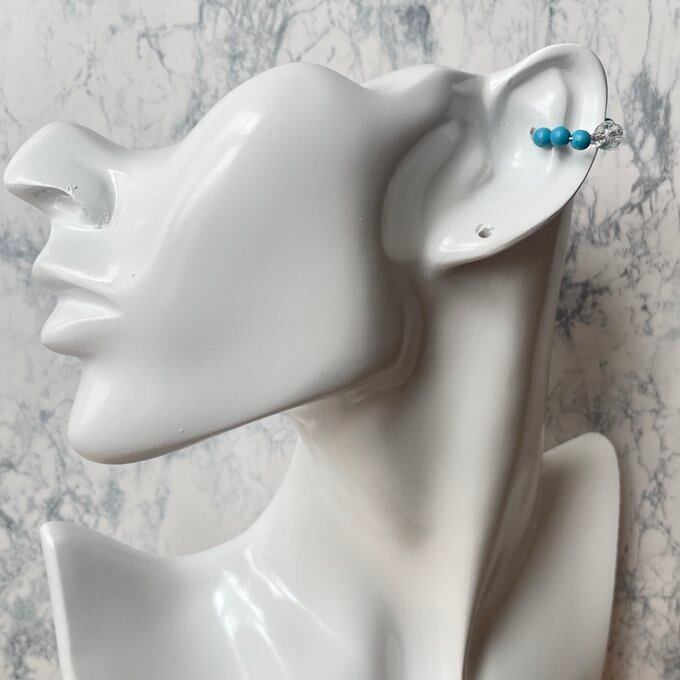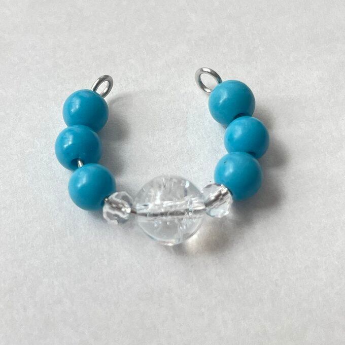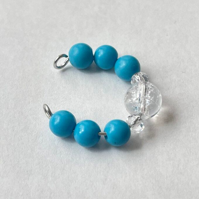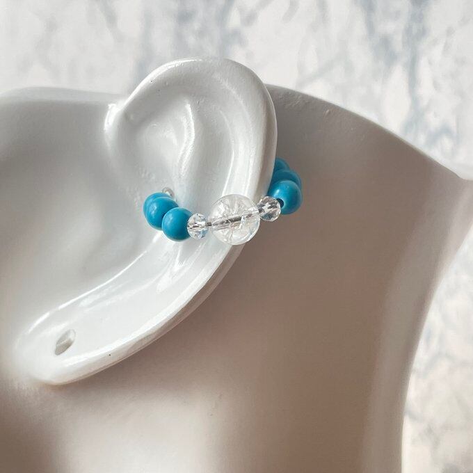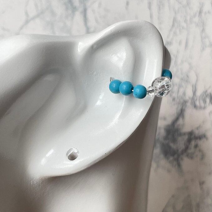 天然石イヤーカフ 1連 ターコイズ×クラック水晶 ステンレス製 【受注生産】