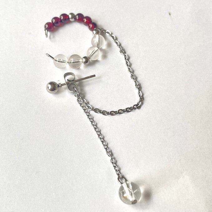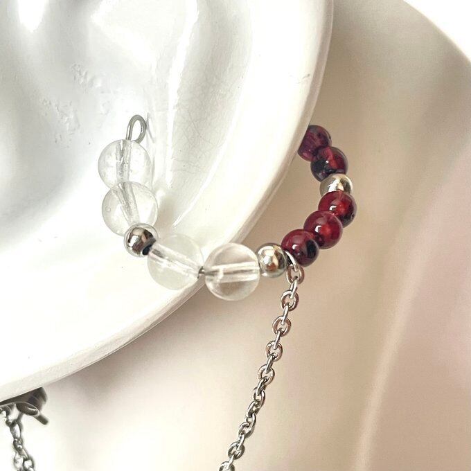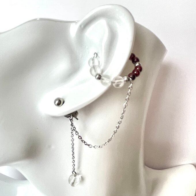 天然石 イヤーカフ イヤーカフ+ピアス ガーネット×水晶×クラック水晶 シルバー色 サージカルステンレス製 金アレ対応 【受注販売】
