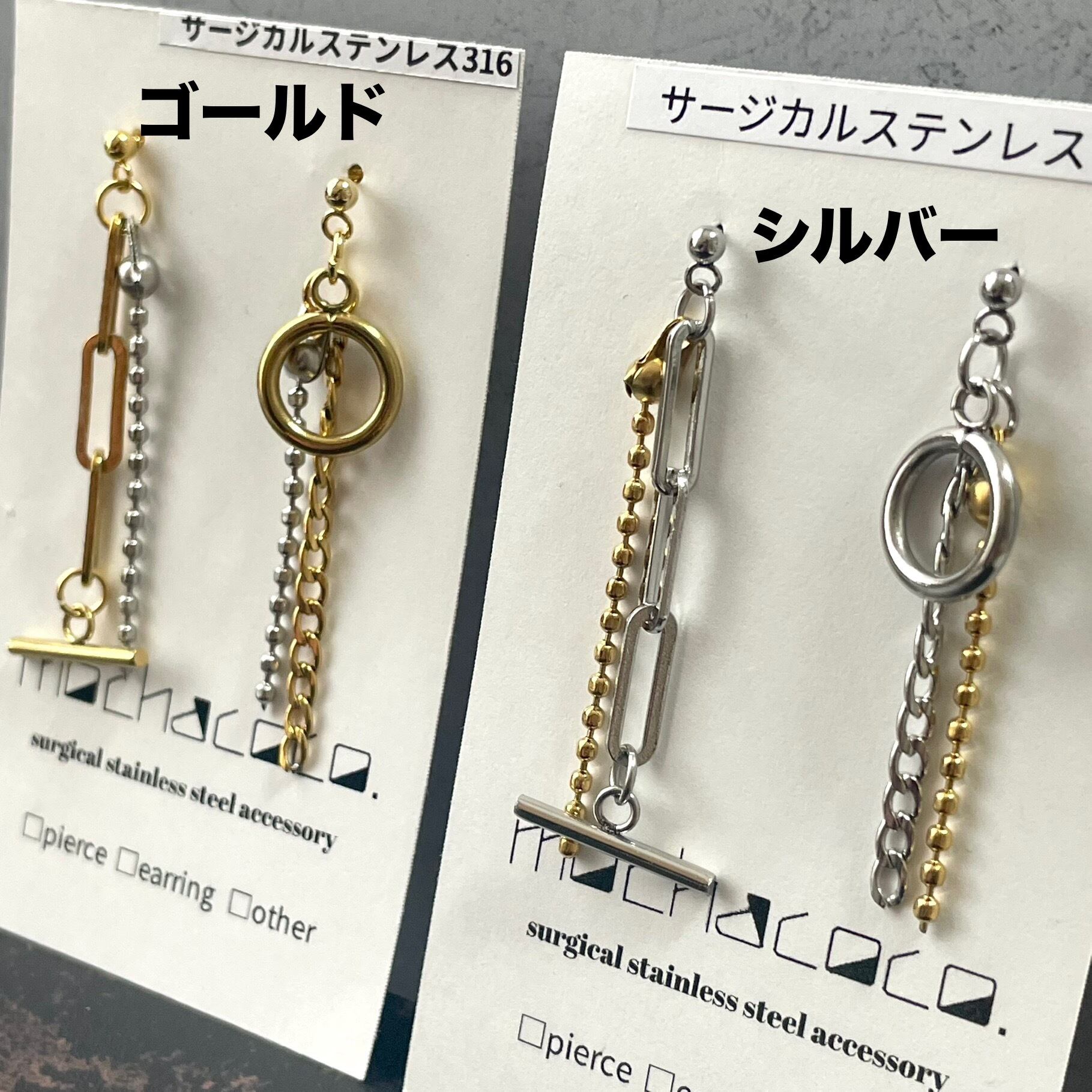 - サージカルステンレスピアス シルバー・ゴールド -