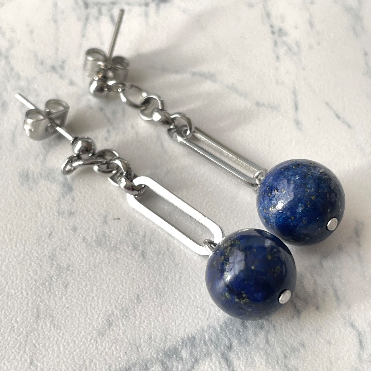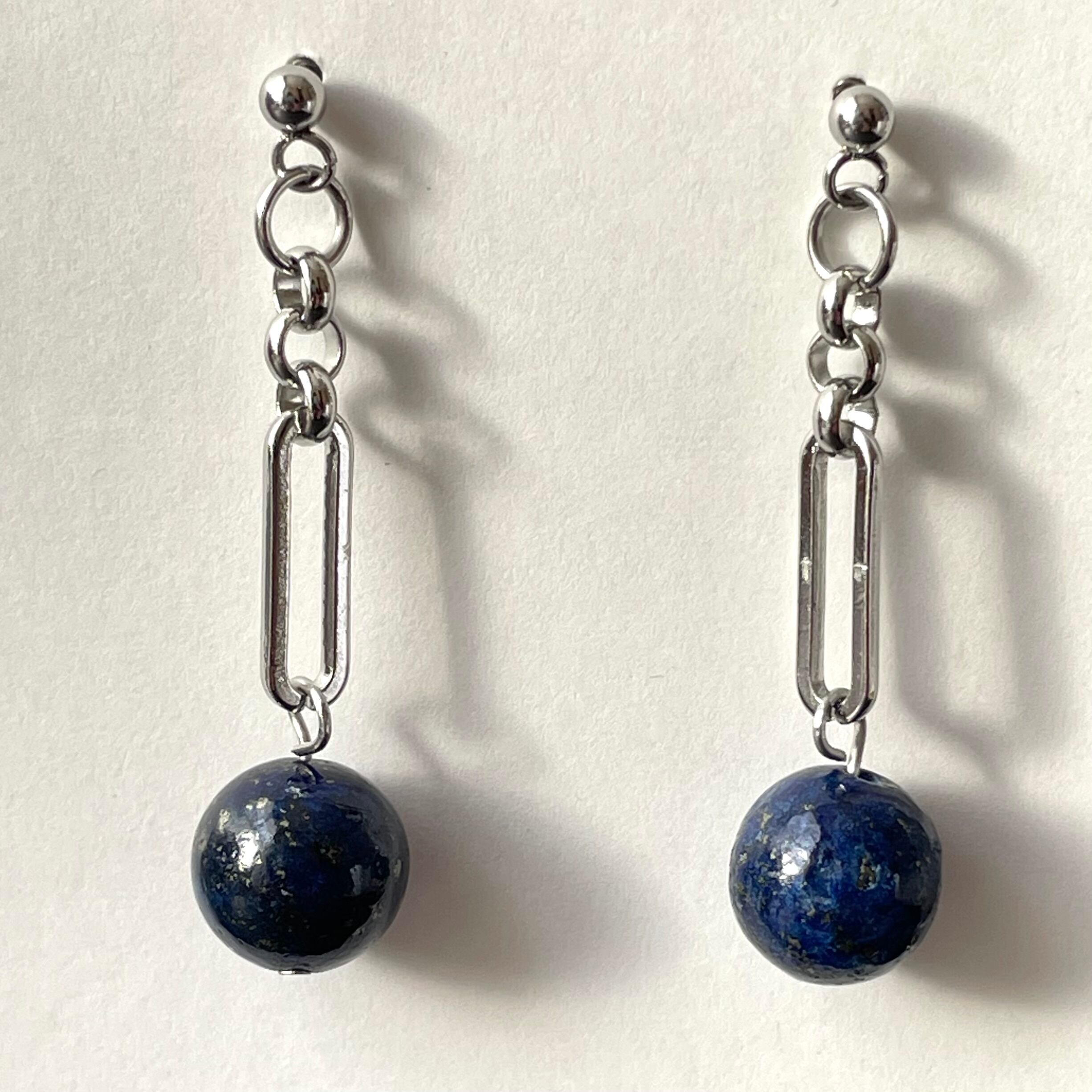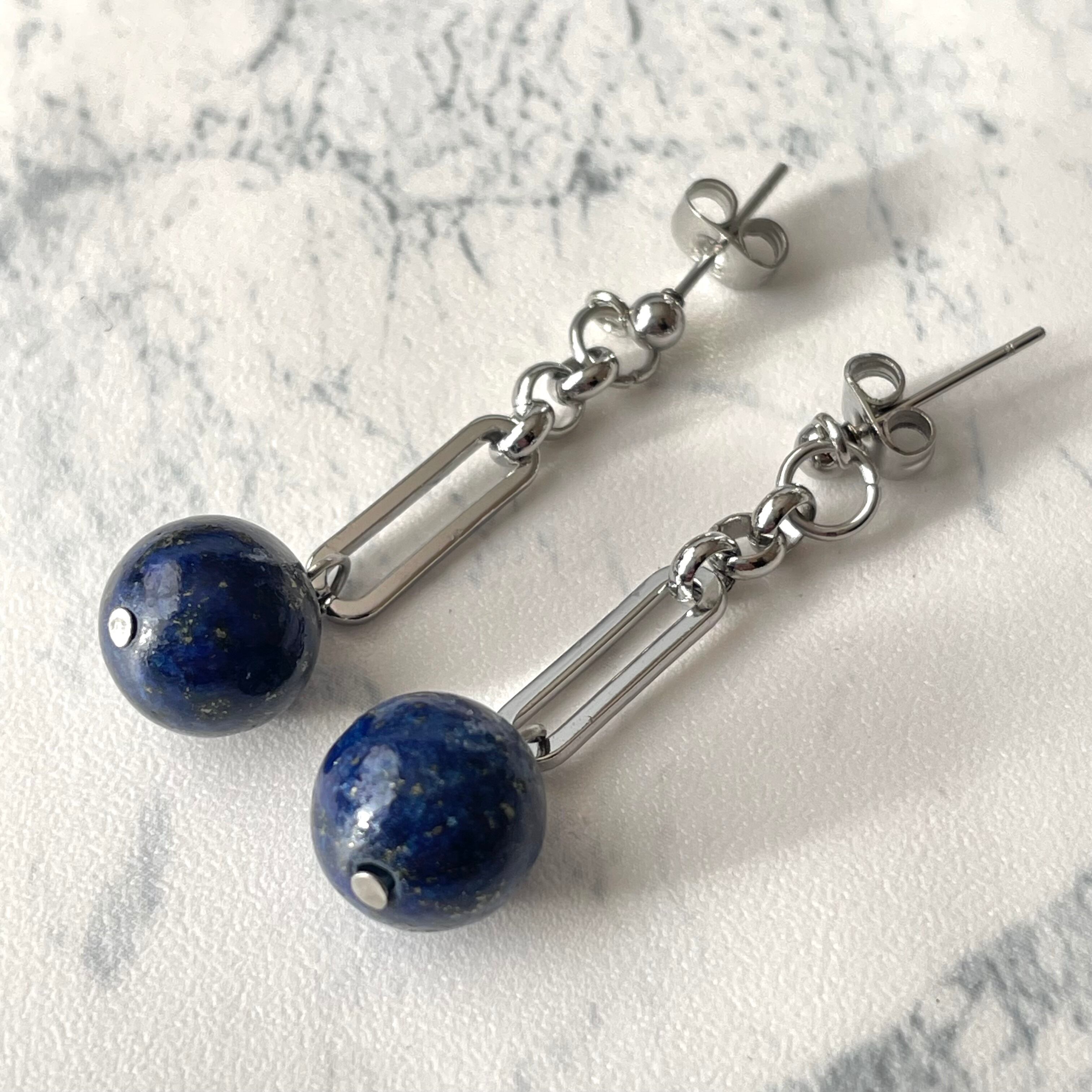 天然石ピアス ラピスラズリ サージカルステンレス シルバー色