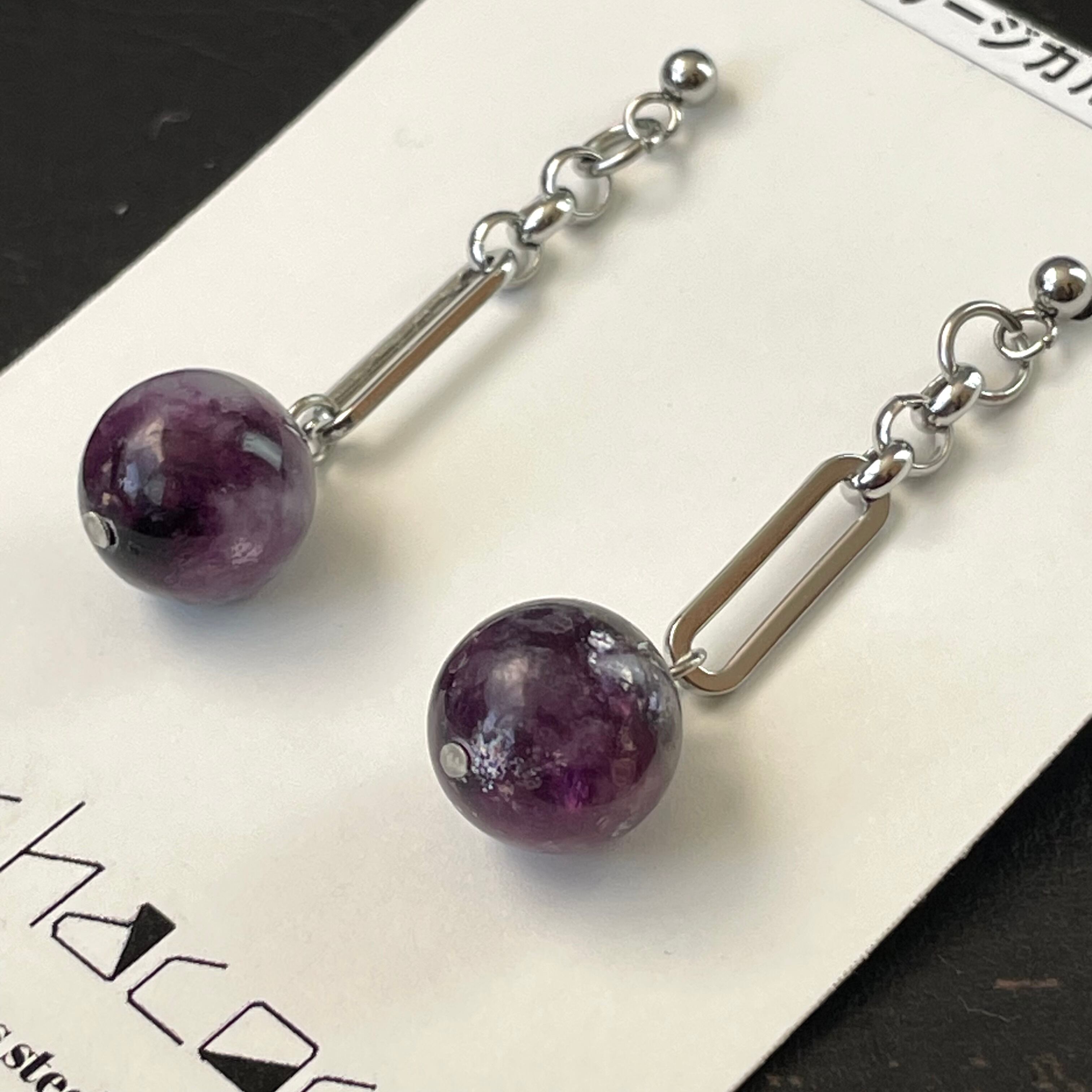 天然石ピアス パープルマイカ サージカルステンレス シルバー色