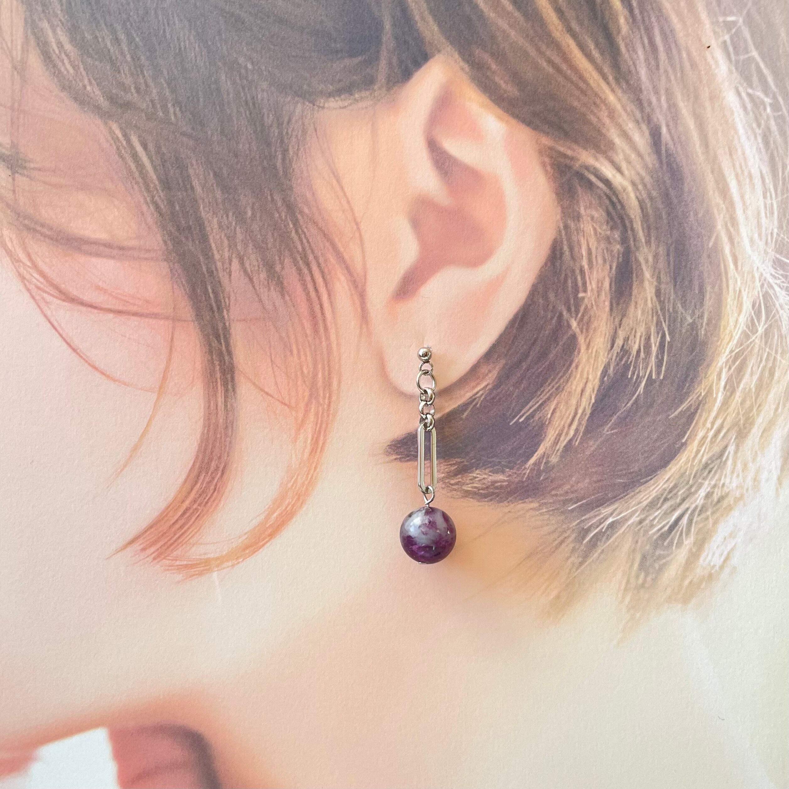 ・パープルマイカの美しい紫色が耳元で華やかさと個性を演出します