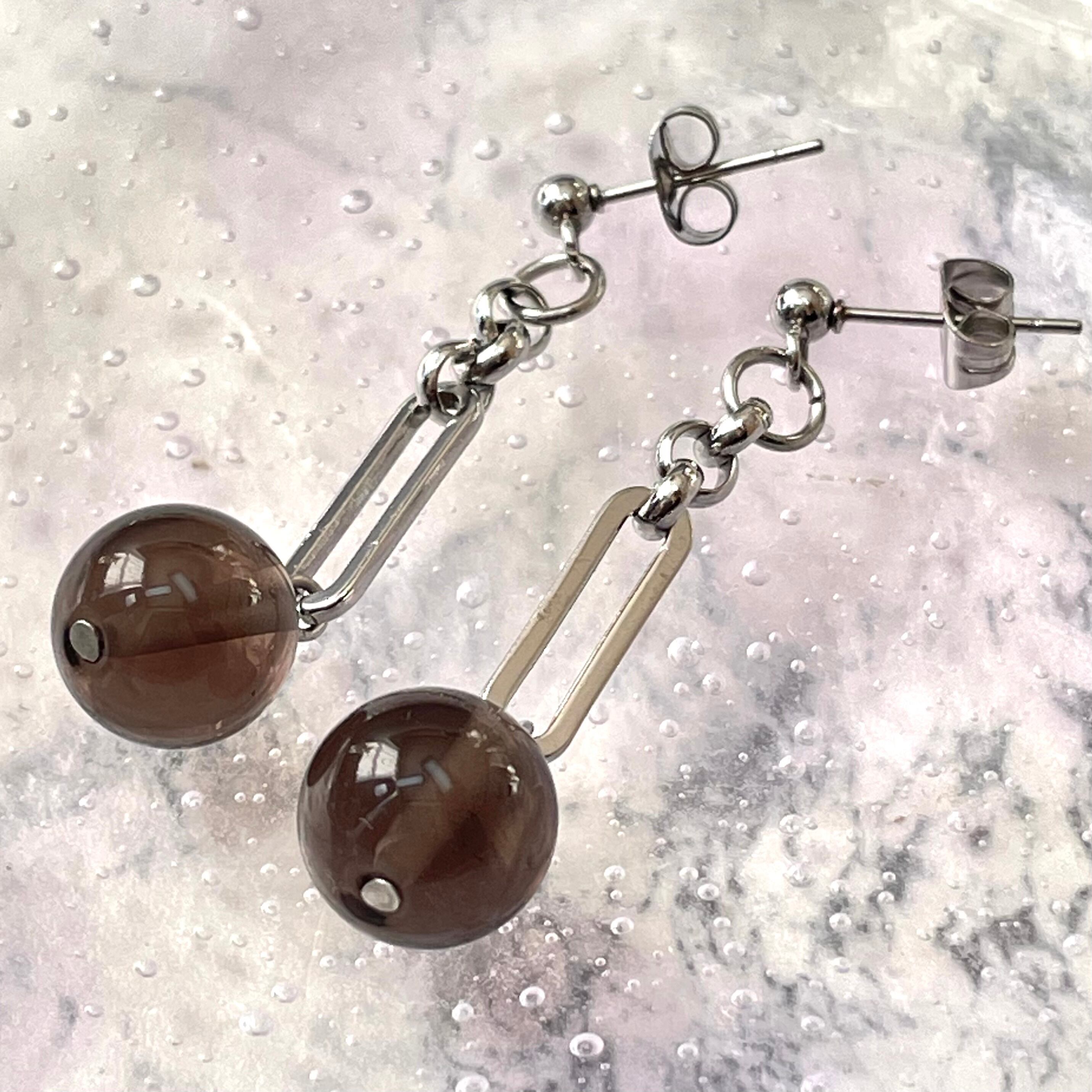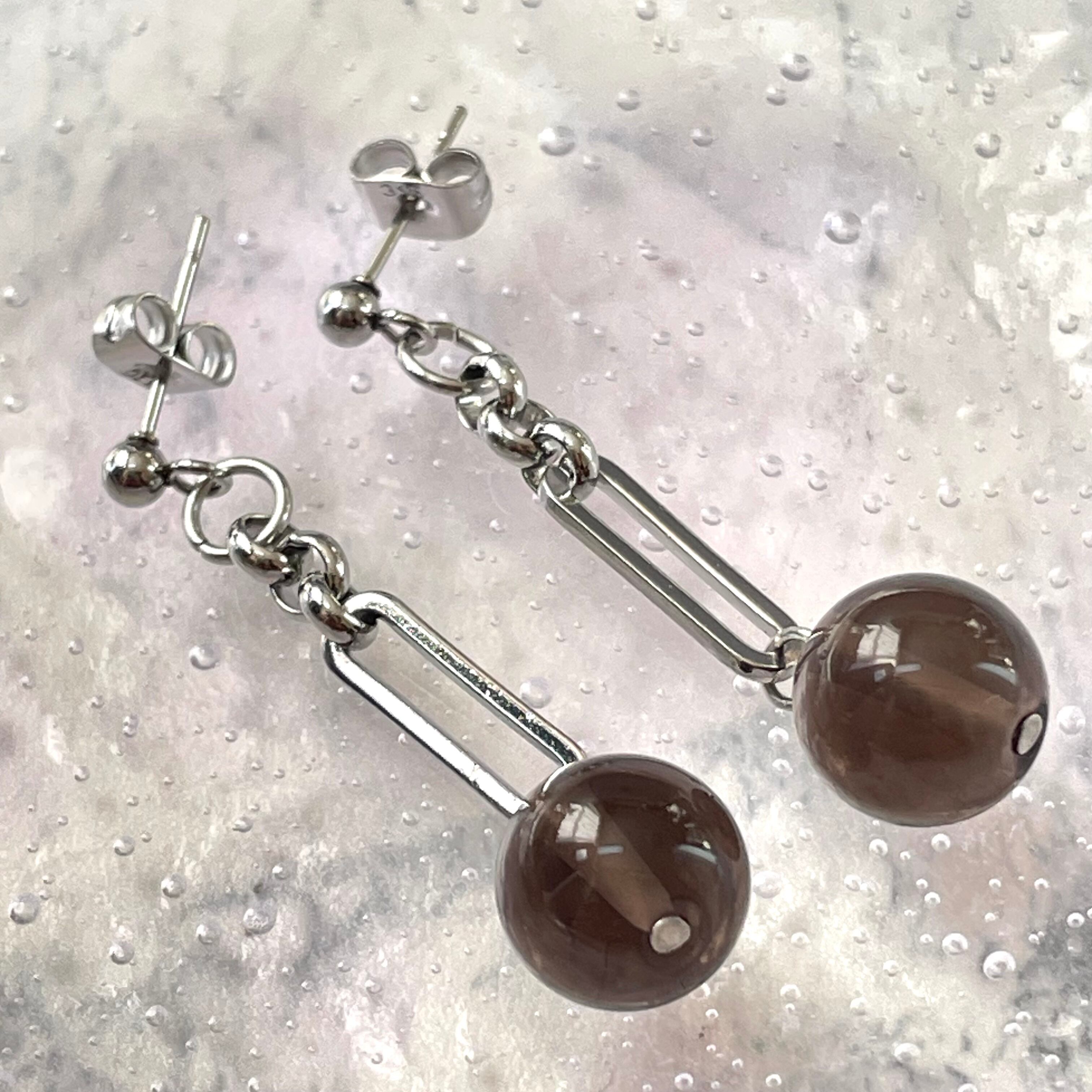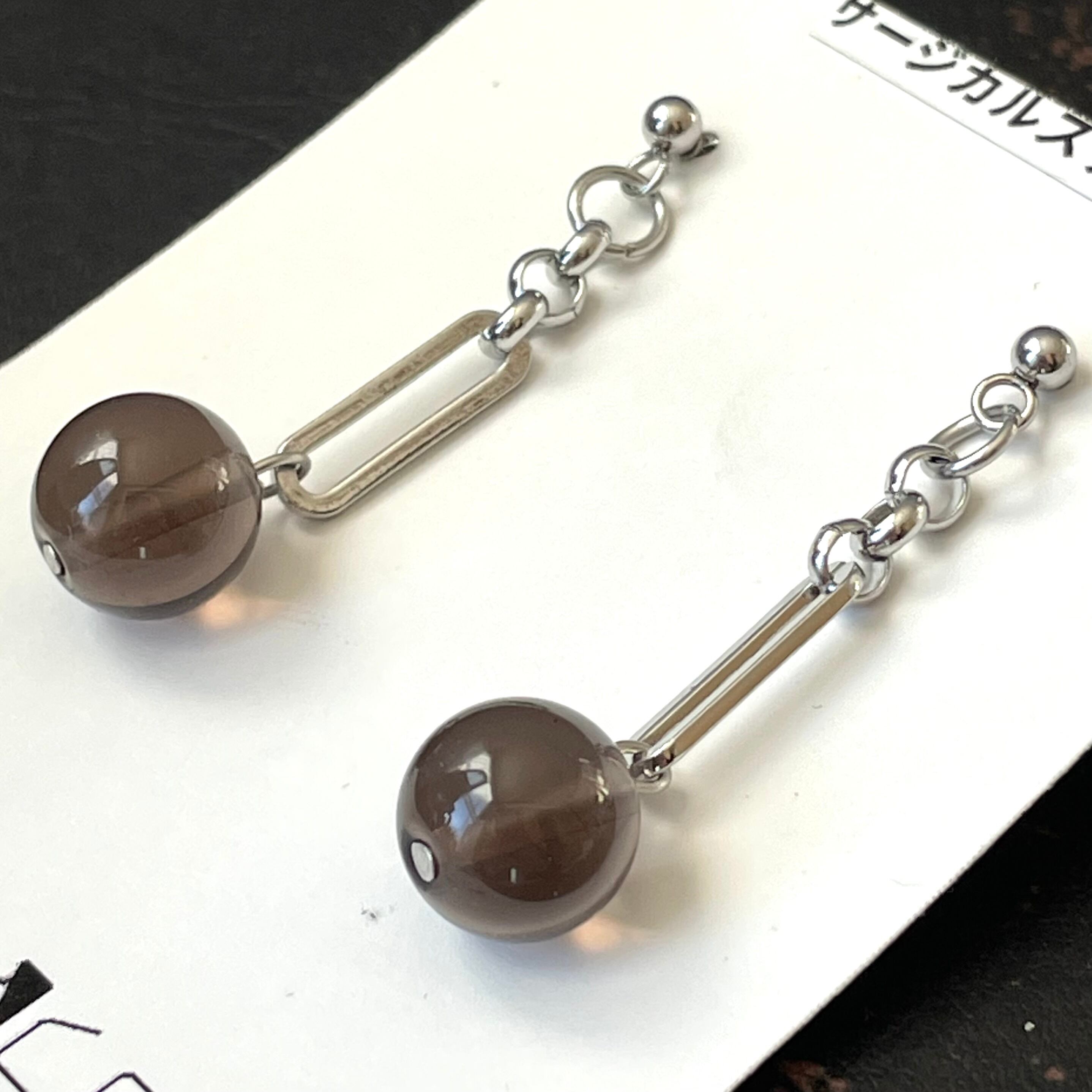 天然石の引き込まれるような透け感のあるブラウンが印象的なデザインで、動くたびに耳元で存在感を放ち、シンプルな装いにもアクセントを加えます。おしゃれを楽しむすべての方におすすめです。