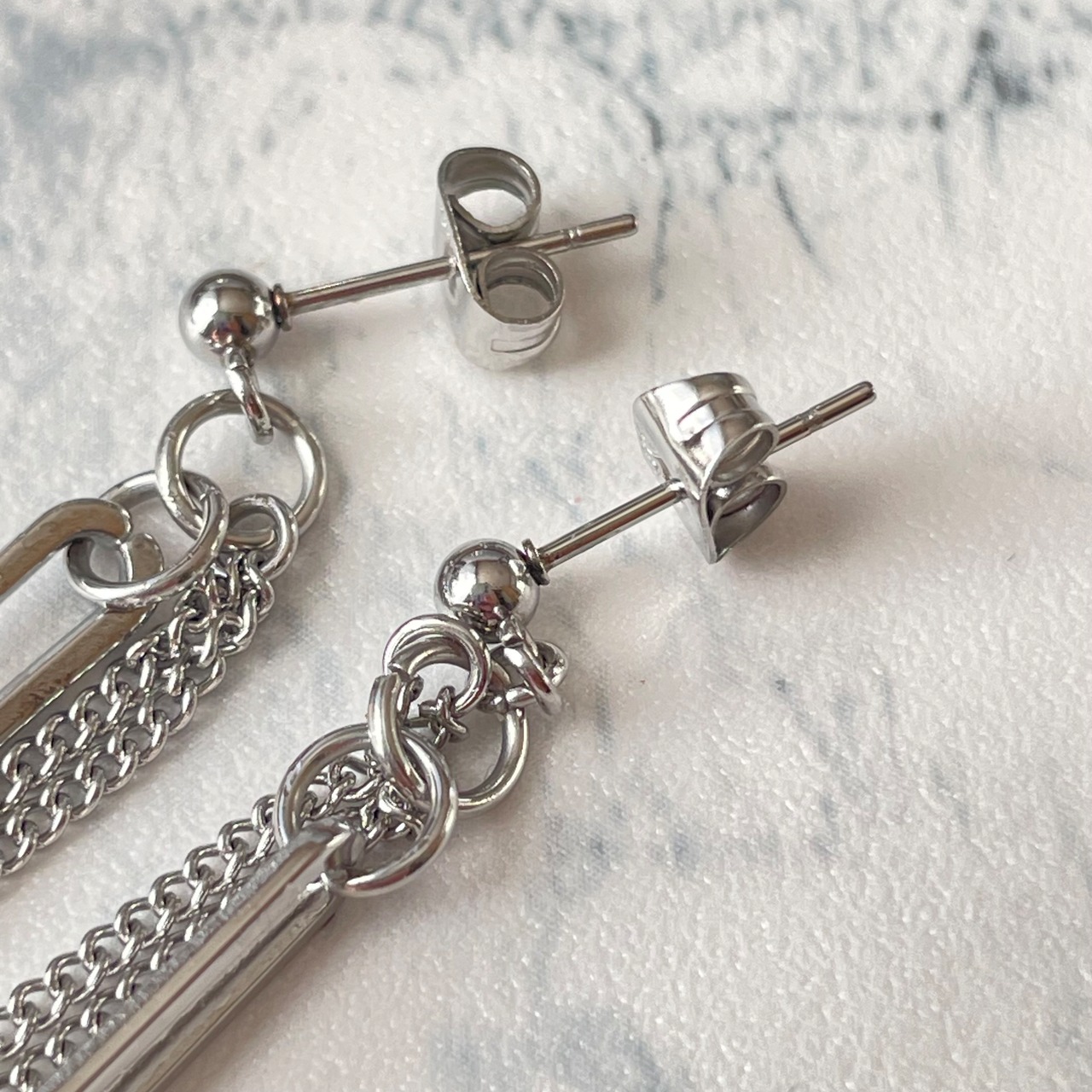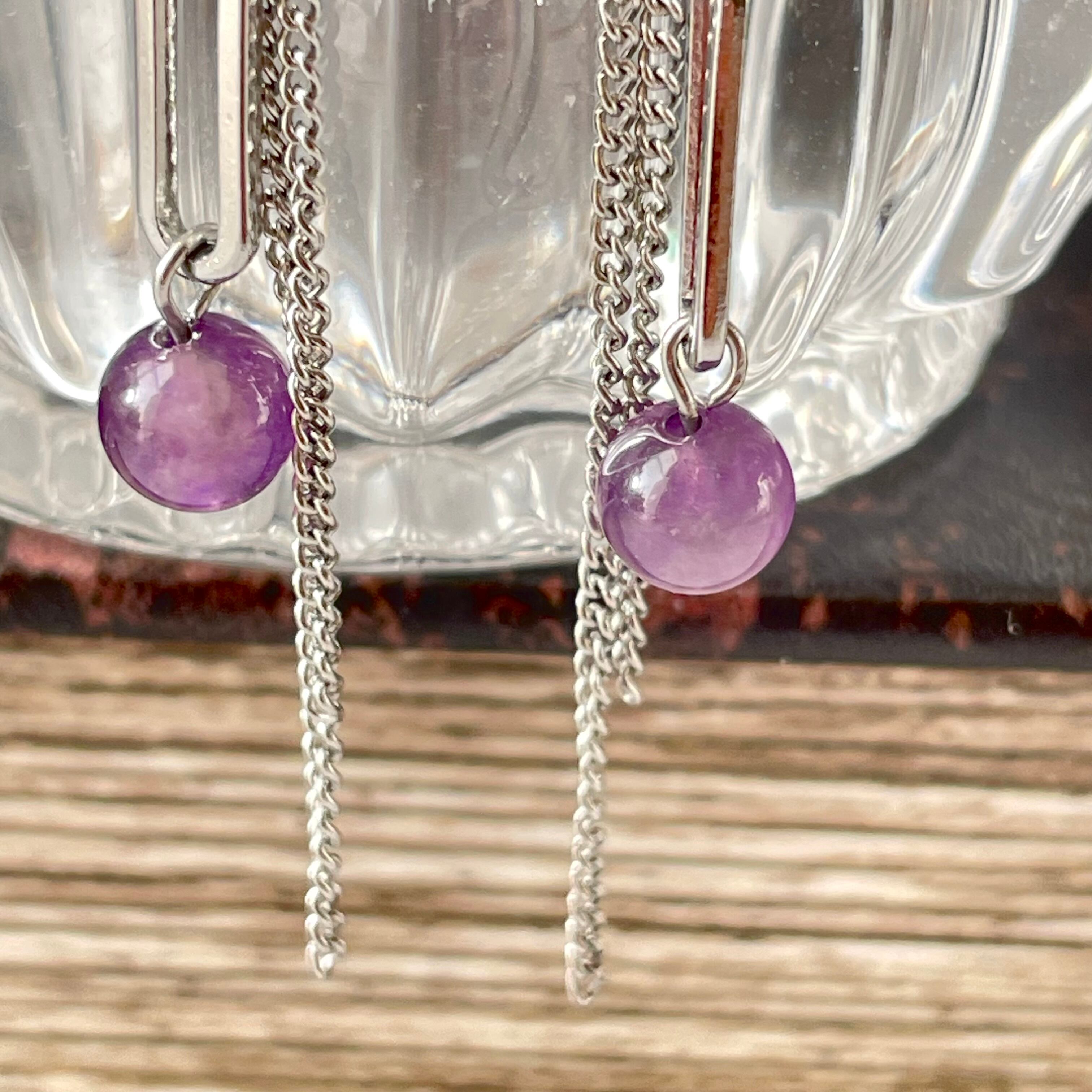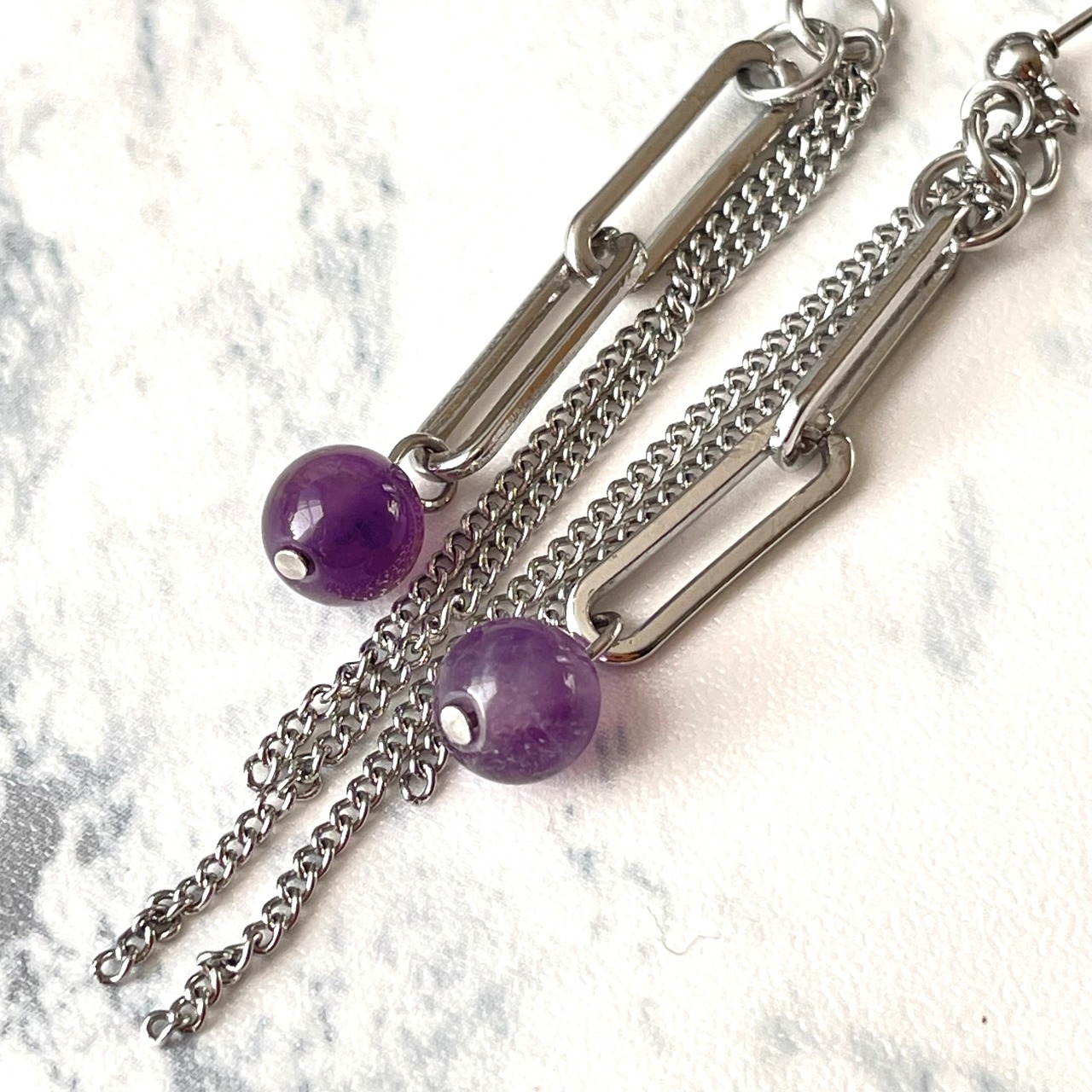 天然石ピアス アメジスト チェーンピアス サージカルステンレス シルバー色